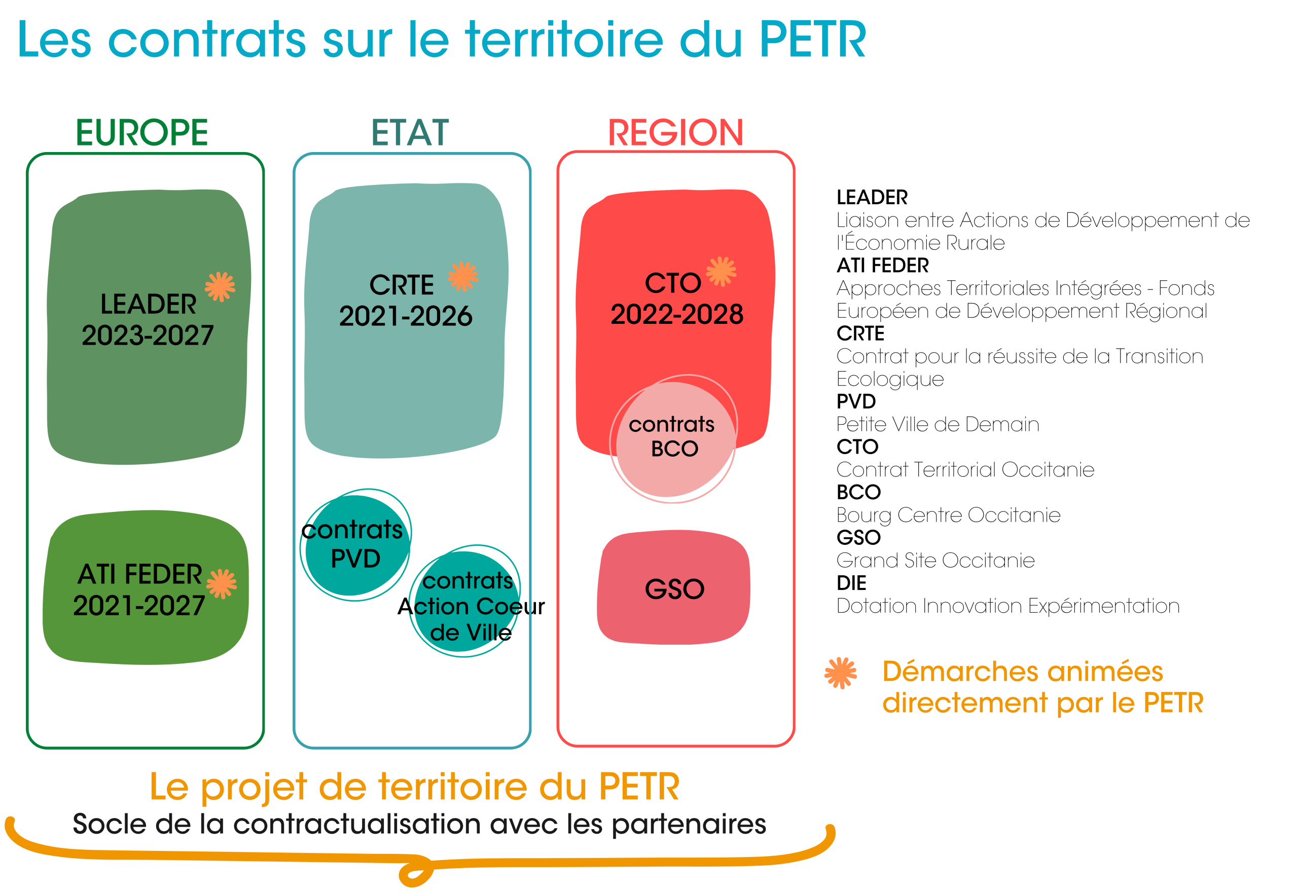 L'ensemble des collectivités du PETR sont couvertes par les contractualisations avec l'Etat, l'Europe et la Région.